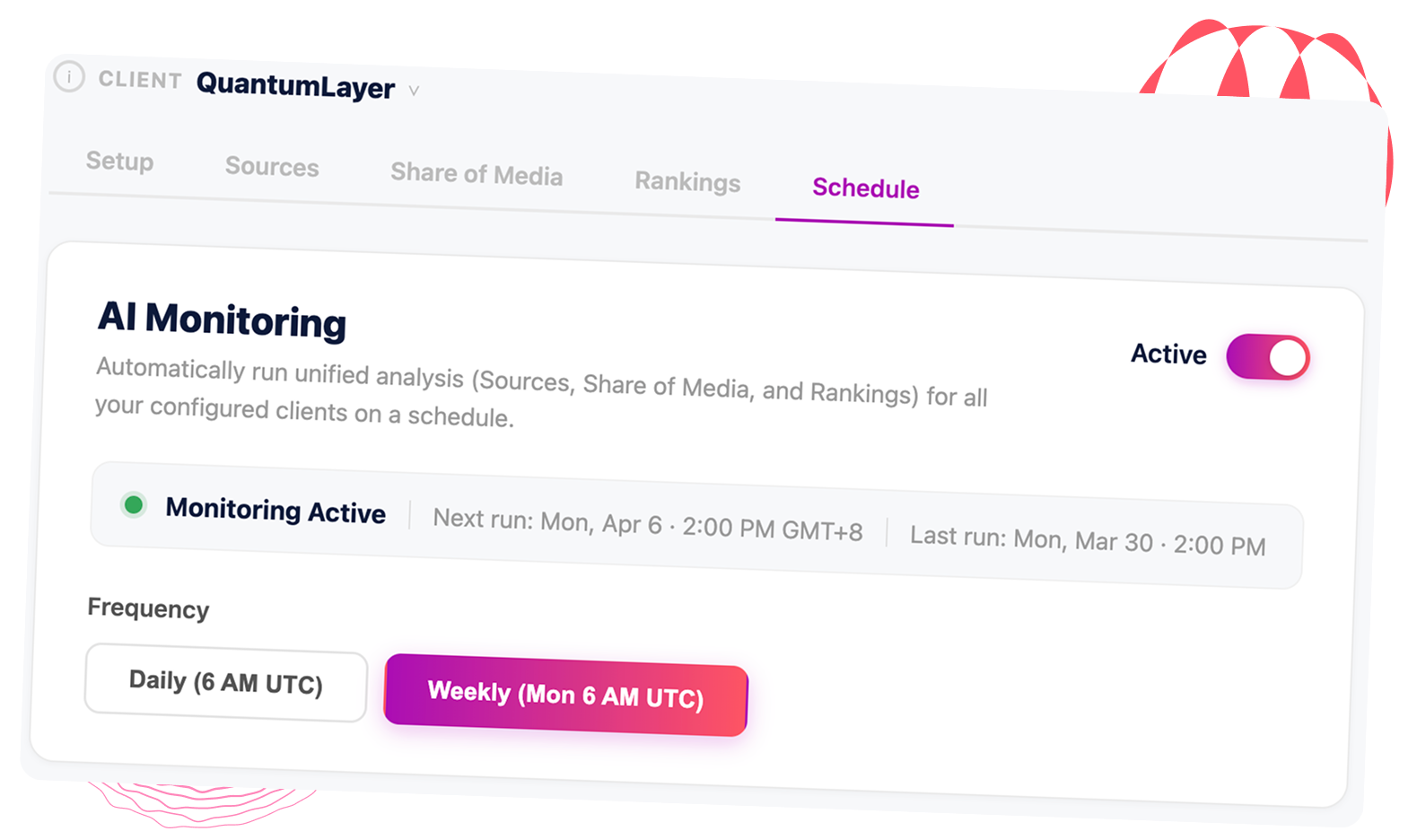 • Monitor your clients' LLM visibility around the clock, automatically